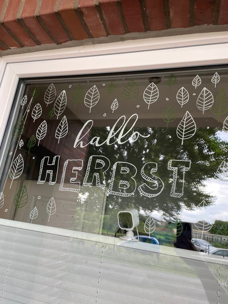 Heute habe ich unser Fenster im Kellerabgang geputzt, und da dieses Fenster direkt neben der Haustür ist, musste auch gleich eine neue Bemalung her - der Sommer ist vorbei und der Herbst hält Einzug. Mal schauen, ob ich zu Halloween noch etwas neues aufmale oder als Nächstes dann ein winterliches Motiv kommt.