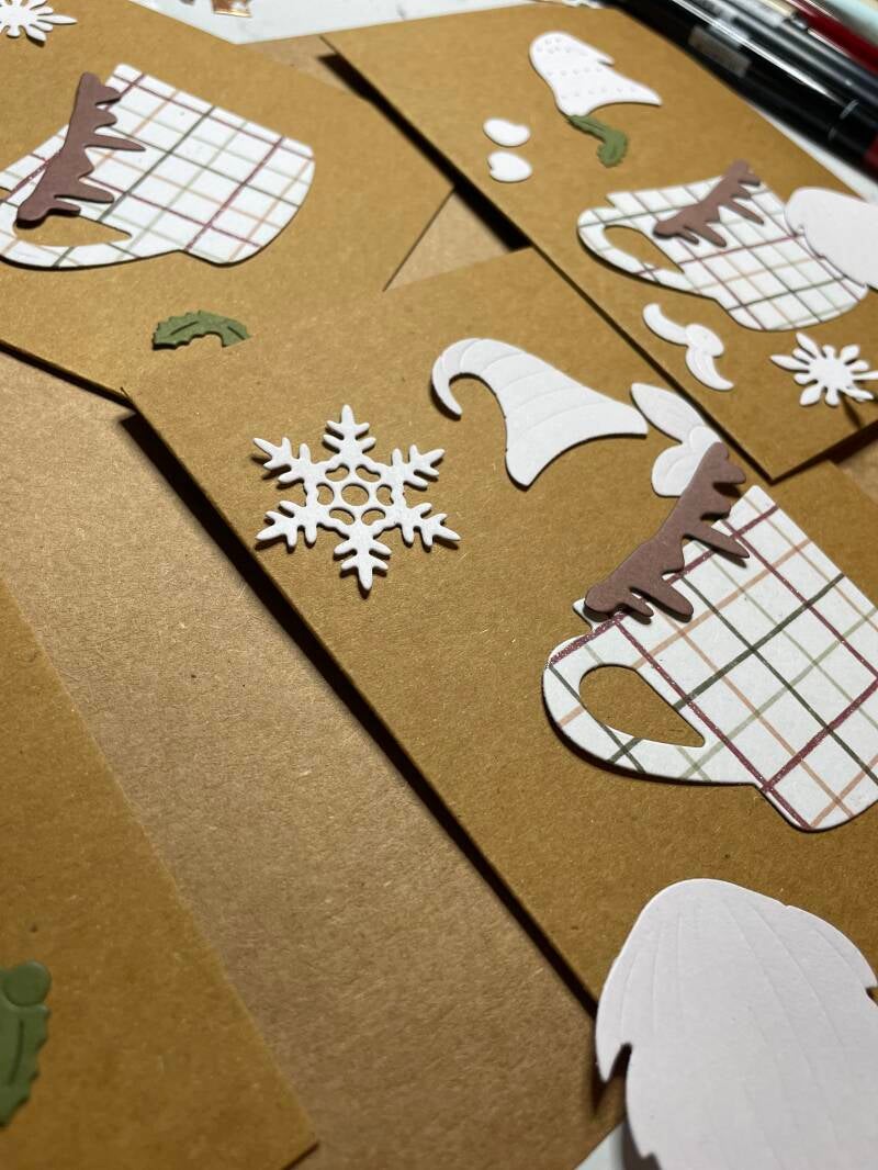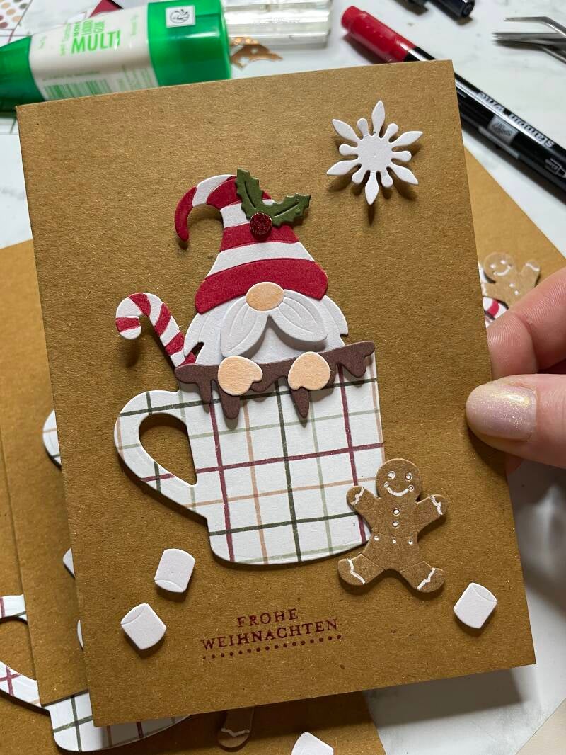 Der Countdown zum Weihnachtsmarkt läuft... und ich verbringe jede freie Minute am Basteltisch. Heute habe ich aus ganz vielen kleinen Stanzteilen diese kleinen Wichtel zusammengesetzt - sie zieren nun einen Schwung Weihnachtskarten.