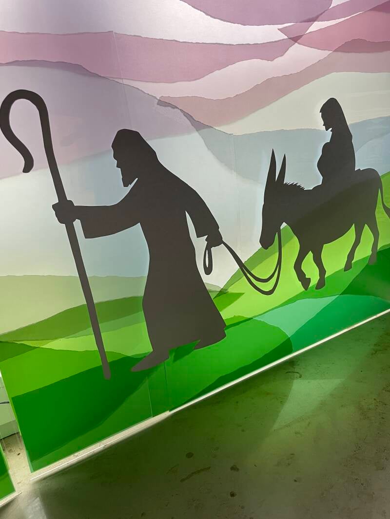 Zunächst hatte ich die Silhouette von Josef und Maria mit Kreidestiften auf die Scheibe gemalt, dann aber festgestellt, dass die Farbe nicht deckend genug war. Also hab ich umdisponiert und die Motive aus weißem Tonkarton ausgeschnitten. Von innen wie von außen sieht der Farbverlauf wirklich wunderschön aus ✨